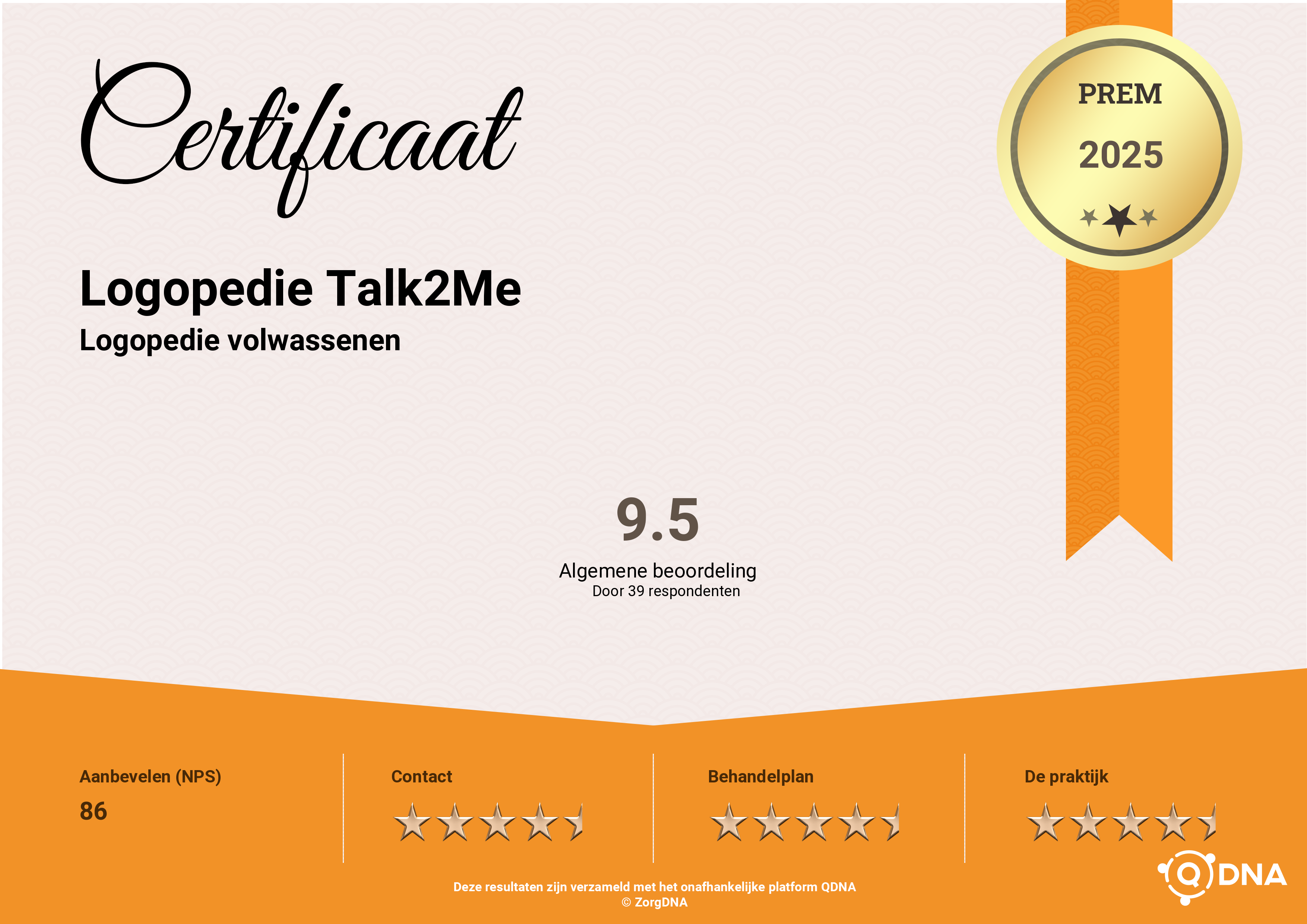 Trots! Op een geweldige, algemene beoordeling van mijn praktijk in 2025 met een 9,5!
